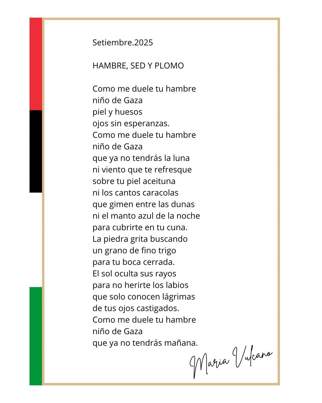 En "Claridad" hemos acordado tener un espacio donde creaciones y comentarios vinculados a las letras tengan un lugar. Lo inauguramos con dos poemas que se refieren al drama que sufre el pueblo palestino.