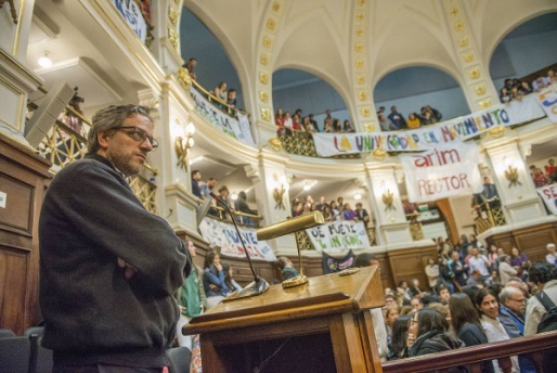 El Paraninfo fue escenario de expresiones de intolerancia por parte de un sector estudiantil que no acompañaba a ninguno de los dos candidatos. En esta elección la Federación de Estudiantes Universitarios del Uruguay (FEUU) no tuvo una postura única ya que cada Centro de estudiantes resolvió el voto de sus delegados.